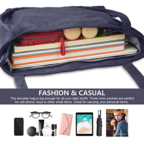 Corduroy Totes Tas met ritssluiting, FITDON Schoudertassen Handtassen Dames Hobos Grote Capaciteit Boodschappentas met…