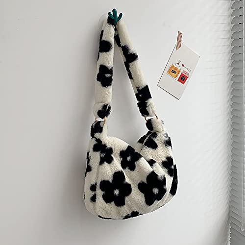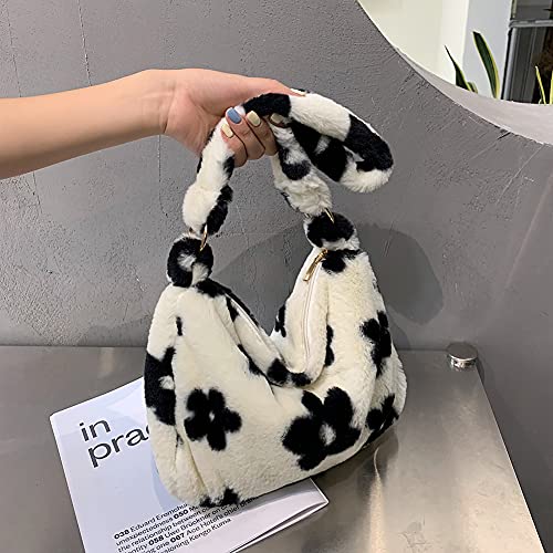 Specification: Pluche schoudertas voor dames, zachte handtas, Y2K Fashion pluche tas met ritssluiting, meisjes kunstbont schoudertas…