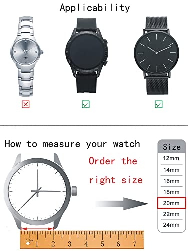 Opmerking: Gebruik een liniaal om de afstand tussen de lugs van het horloge te meten (zoals aangegeven in het diagram) alvorens tot aankoop over te gaan. Het product is alleen geschikt voor horloges met een lugafstand van 12mm, niet voor horloges met een lugafstand van 11mm en 13mm. De afstand tussen de lugs van het horloge en de maat van het bandje moet precies hetzelfde zijn. Anders werkt het bandje niet met uw horloge.