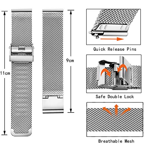 Specification: XIRUVE Roestvrijstalen Vervanging Mesh Geweven Horlogeband 12-24mm Breedte Snelsluiting voor Dames en Heren