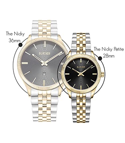 Burker Watches Nicky Petite – Dames Horloge 28 mm – Analoog Quartz Dames Polshorloge Rond Waterdicht 3 ATM met RVS…