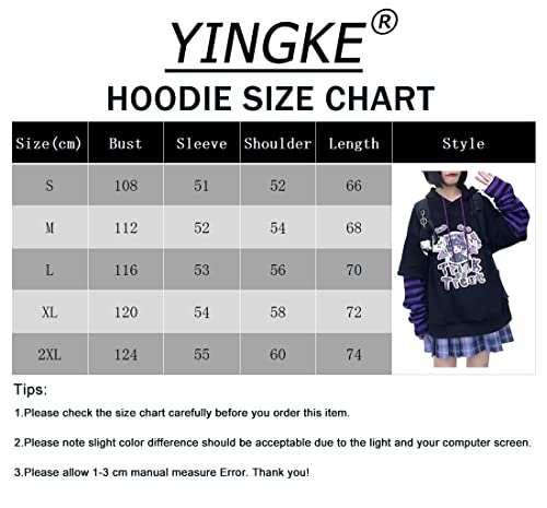 Specification: YINGKE Dames Anime Hoodie Japan Kawaii Capuchon E-Girl Streetwear Meisjes Y2K Gothic Sweatshirt Harajuku Jumper