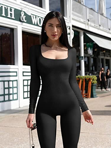 VasedGins Vrouwen Yoga Jumpsuits Workout Geribbelde Lange Mouw Sport Jumpsuits, Geribbelde Bodysuit Voor Vrouwen…