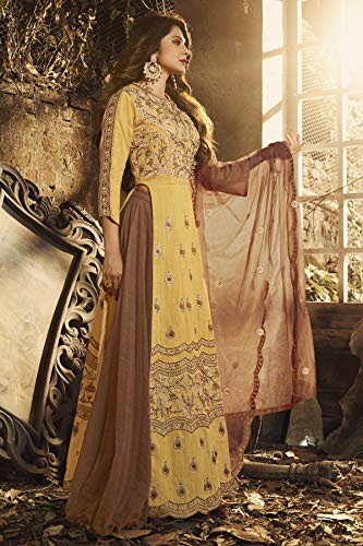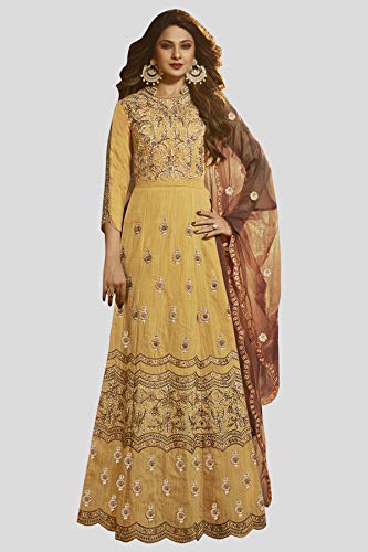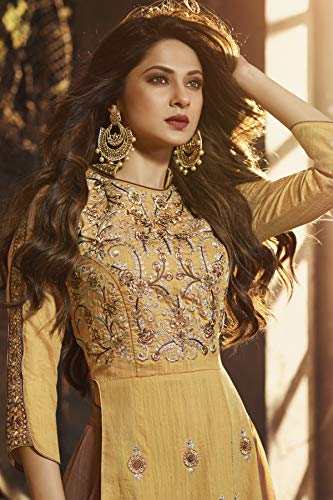 Specification: Party Wear Light Yellow Color Silk Fabric Viscose Embroidery Indian Women Salwar Kameez (Semi-Stitched)