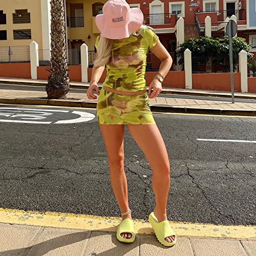 Merfrede Vrouwen Print Tweedelige Rok Set Sexy Off Shoulder Tube Top En Tie Dye Bodycon Slanke Party Mini Rok Outfits…