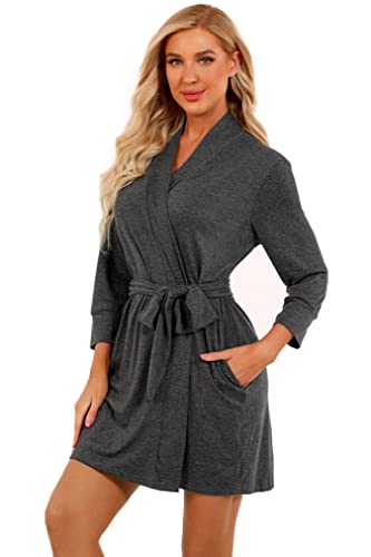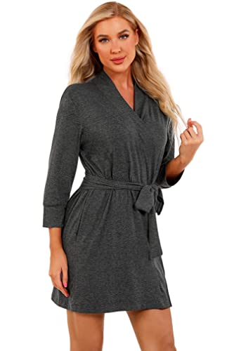 Badjas dames zomer kort: deze 3/4 mouwen badjas met diepe V-hals en 2 opgestikte zijzakken, in de taille met lussen vaste ceintuur. Perfecte aanvulling op je ochtendroutine, ontspannen avondplannen, voor douchefeesten, loungewear, nachtkleding, nachtkleding, wellness en pyjama-feest.