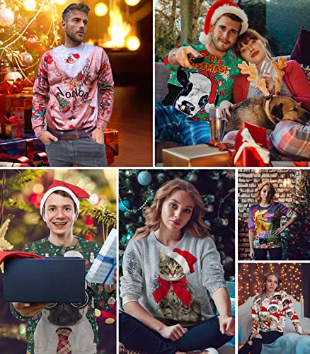 Loveternal Unisex Lelijke Kerst Truien 3D Print Lelijke Kerst Trui Lange Mouwen Xmas Trui Jumper S-3XL