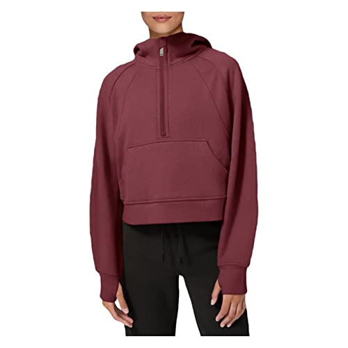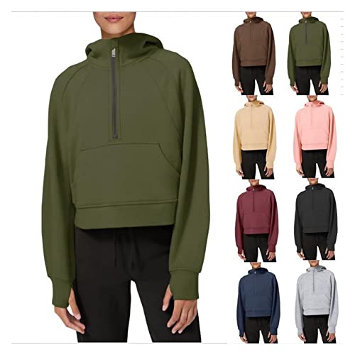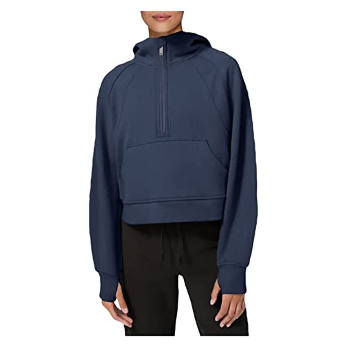Specification: Hoodies For Women Half Zip Long Sleeve Fleece Crop Pullover Sweatshirts With Pockets Thumb Hole (Color : Black, Size…