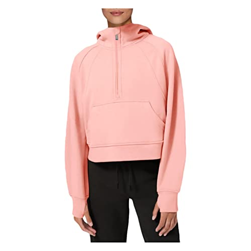 Womens Hoodies Fleece Lined Collar Pullover 1/2 Zipper Sweatshirts Long Sleeve Crop Tops Sweater Thumb Hole
