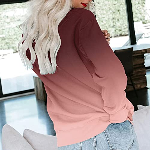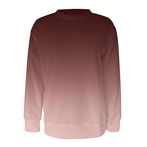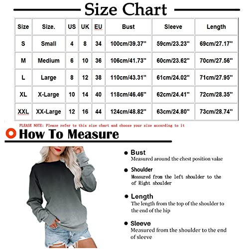 Specification: HUGU Lange Mouwen T-shirts Vrouwen Mode Gradiënt Kleur Losse T-shirt Lange Mouwen Ronde Hals Pullover Casual Blouse Tops
