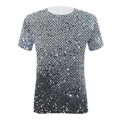 OIUHJN Dames T-shirt T-shirt blauw melkwegprint korte mouwen dagelijks weekend basic ronde hals normaal abstract…