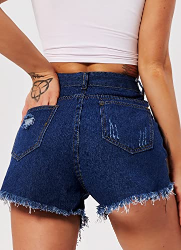 TZLDN Korte jeansbroek voor dames – gemiddelde klim korte broek strekken scheuren ruwe zoom denim korte jeans