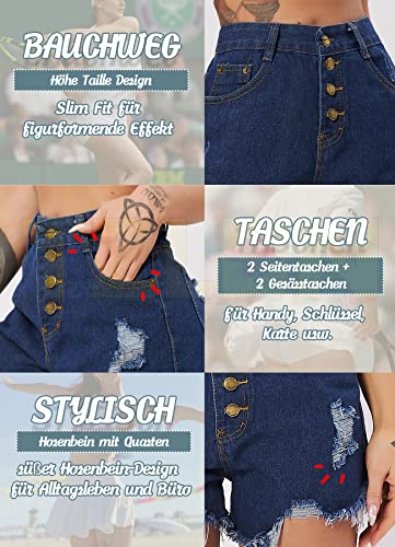 Specification: TZLDN Korte jeansbroek voor dames – gemiddelde klim korte broek strekken scheuren ruwe zoom denim korte jeans
