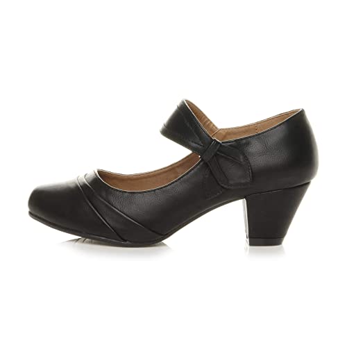 Womens dames midden hak Mary Jane riem Smart werk Comfort Court schoenen maat