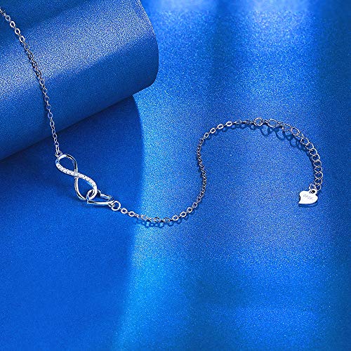 Specification: Infinity-armband voor dames, Armband van 925 sterling zilver, glinsterende vierkante zirkonia, Liefde voor altijd…