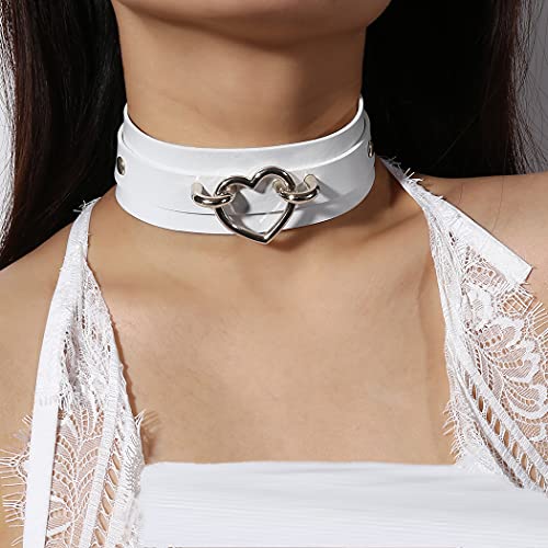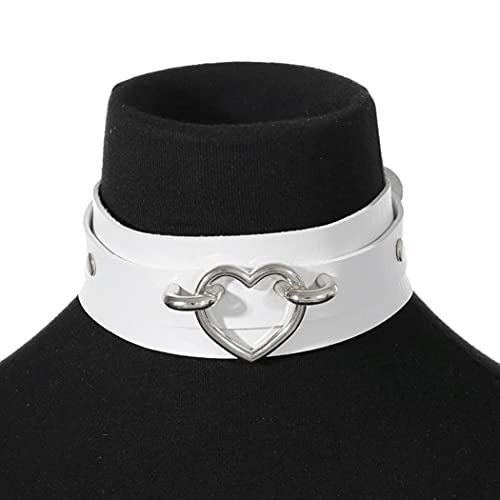Aabellay Hart Choker Ketting PU Lederen Goth Choker Kraag Met Hart Punk Rock Kraag Verstelbare Maat- Wit Met Zilveren…