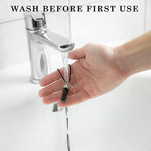 De hanger van de TOURMALINEJUWELEN moet worden gewassen voor het eerste gebruik onder warm stromend water om de zwarte vlekken (van post-productiestof) op huid en kleding te voorkomen. Het moet dan in natuurlijk licht worden laten drogen om “de batterijen op te laden”.