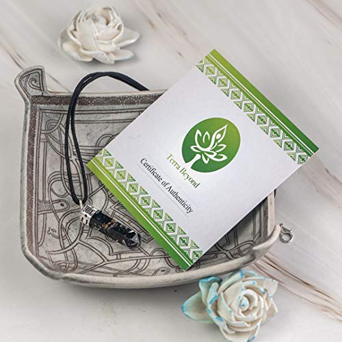 Draag je TOERMALIJN CHAKRA HANGER KETTING om donkere en negatieve energieën te absorberen en jezelf te beschermen tegen schadelijke stralen en golven. De zwarte toermalijn bevat bepaalde moleculen die fullerenen worden genoemd en die verantwoordelijk zijn voor de absorberende, neutraliserende en zuiverende eigenschappen.