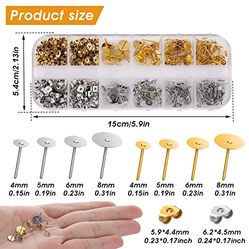 Maat: Zilver en Goud Stud Oorbellen: 4mm/0.15inch, 5mm/0.19inch, 6mm/0.23inch, 8mm/0.31inch; Gouden Achterkant: 5.9*4.4mm/0.23*0.17inch; Zilver Achterkant: 6.2*4.5mm/0.24 *0.17inch