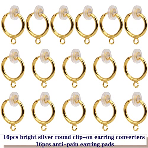 PAKKET INBEGREPEN: U ontvangt 16 stuks gouden ronde clip-on oorbelconverters en 16 stuks zachte oorbelpads in totaal, genoeg om aan de behoeften van uw verschillende knutselprojecten te voldoen.