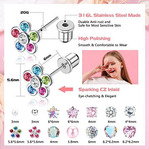 Hypoallergene oorbellen voor meisjes. De set oorbellen voor meisjes bestaat uit 316L chirurgisch staal en 5A zirkonia, hypoallergeen, lood- en nikkelvrij, geschikt voor de gevoelige huid. Hoogwaardig materiaal, roest niet gemakkelijk, corrosiebestendig, je oren worden niet groen, geschikt voor langdurig gebruik.