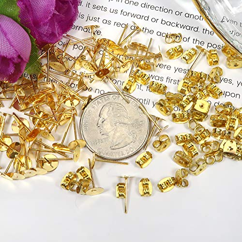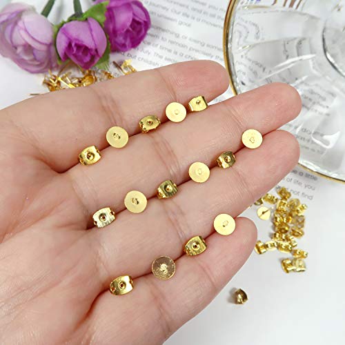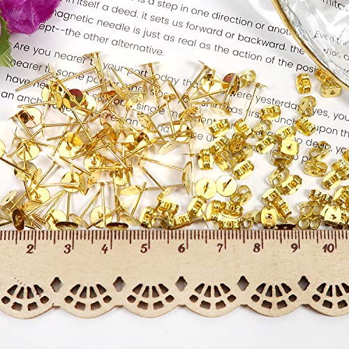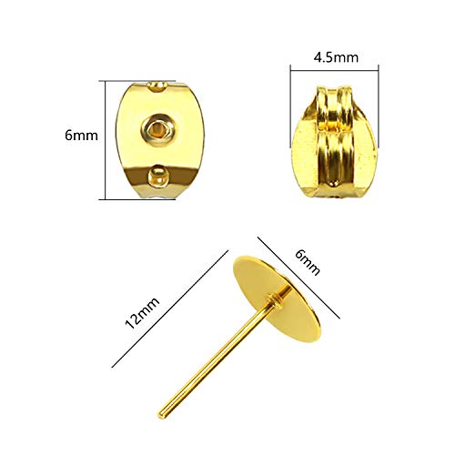 Specification: TOAOB 800 roestvrijstalen platte oorbellen met gouden vlindersluiting en kunststof studs voor het maken van sieraden