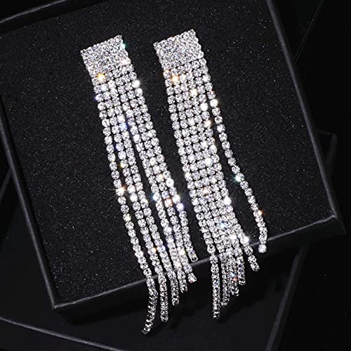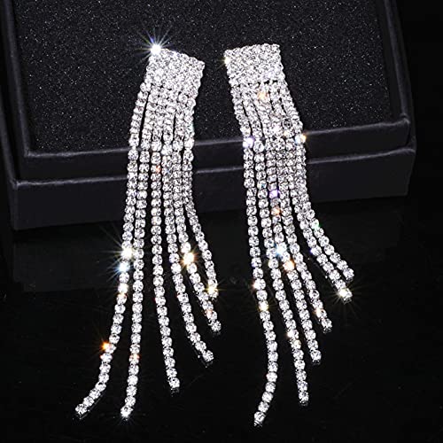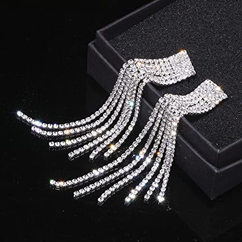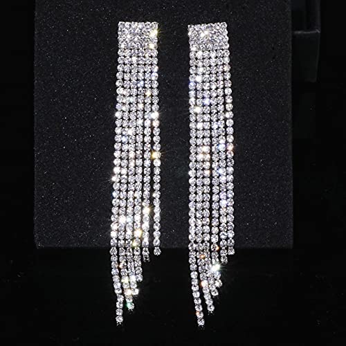 Specification: Zilver Kleur Strass Kristal Lange Tassel Oorbellen voor Vrouwen Bruids Drop Bungelende Oorbellen Bruiloft Sieraden